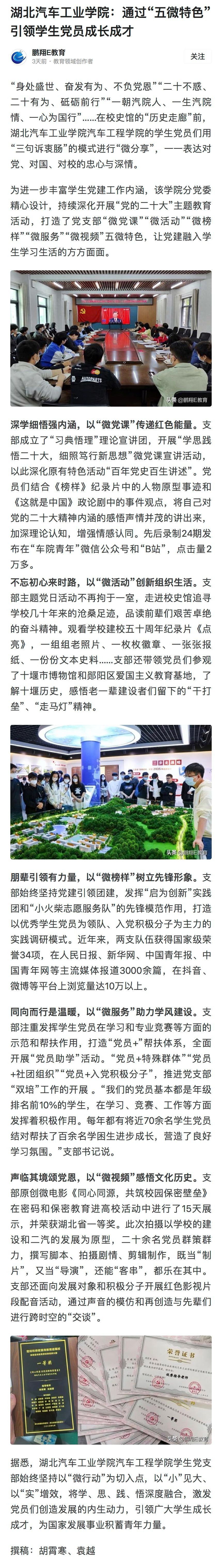 【今日头条】湖北汽车工业学院:通过“五微特色”引领学生党员成长成才