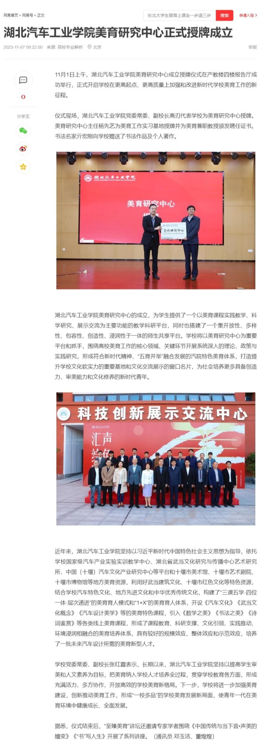 【网易】湖北汽车工业学院美育研究中心正式授牌成立