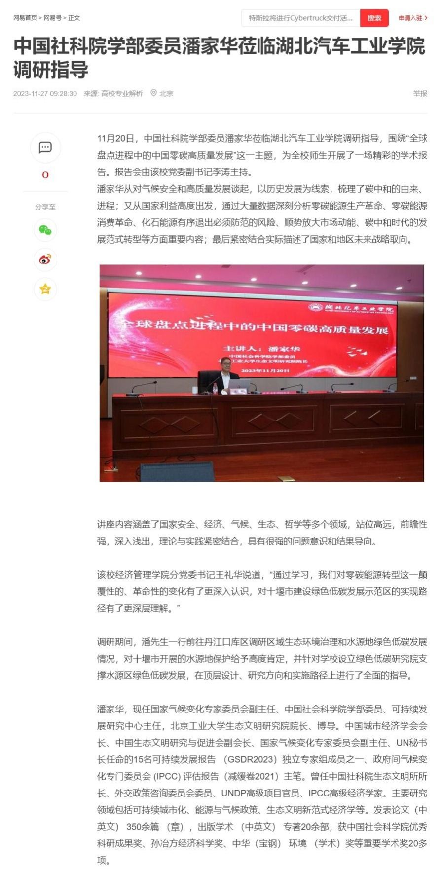 【网易】中国社科院学部委员潘家华莅临湖北汽车工业学院调研指导