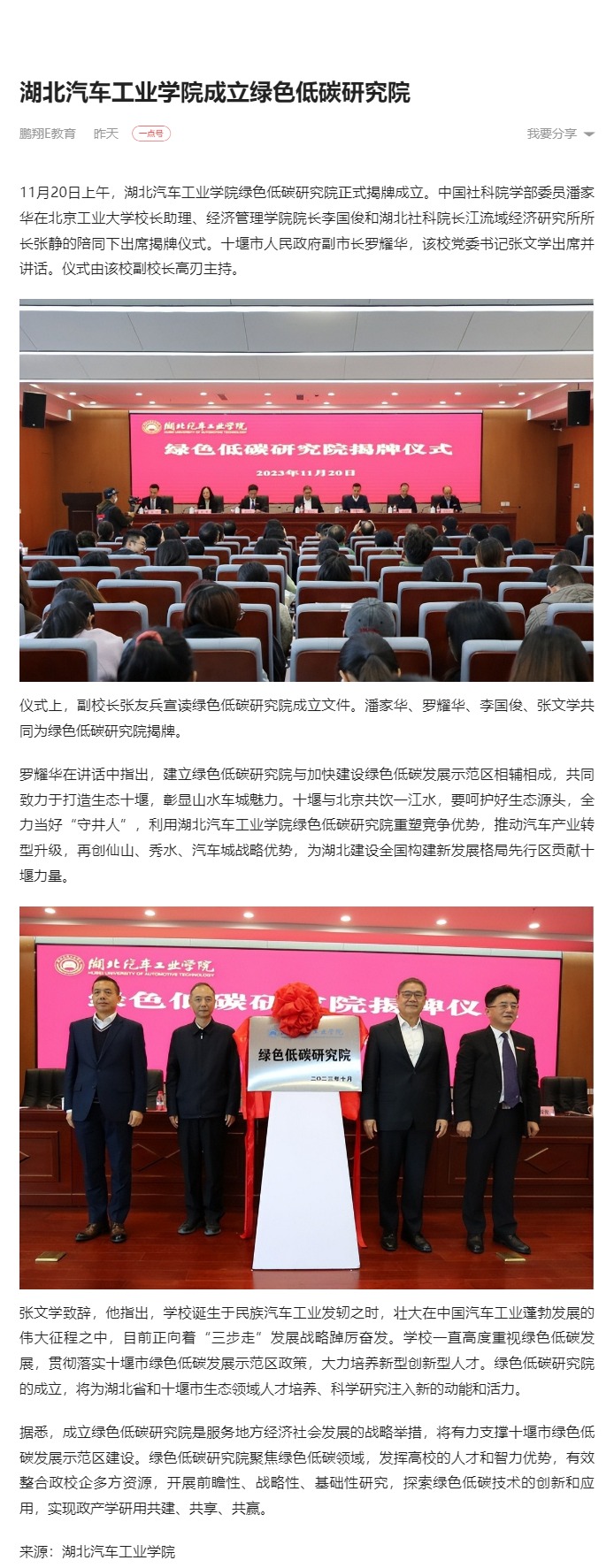 【一点资讯】湖北汽车工业学院成立绿色低碳研究院