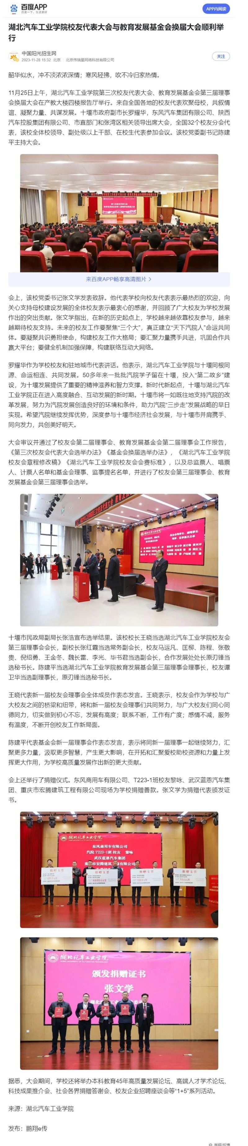 【百度】湖北汽车工业学院校友代表大会与教育发展基金会换届大会顺利举行