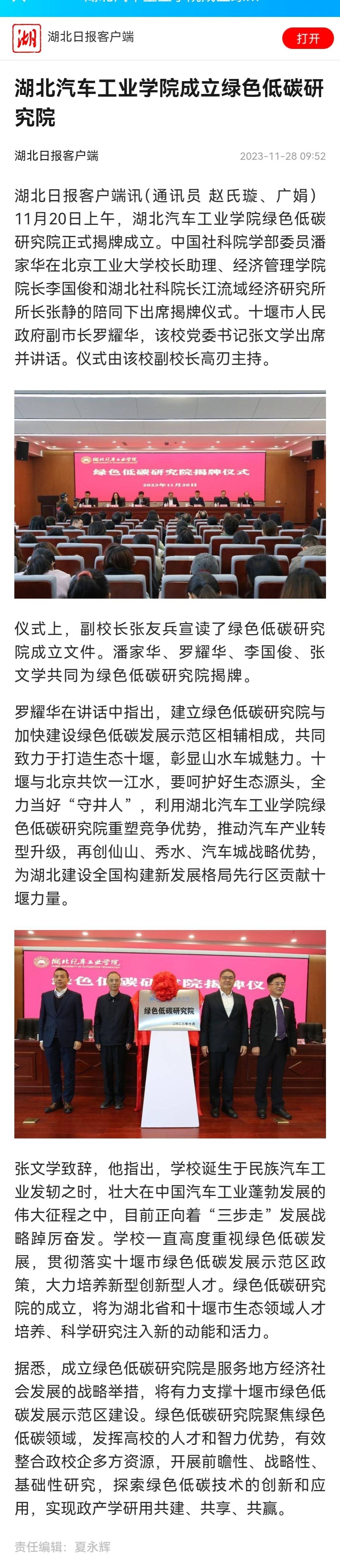 【湖北日报】湖北汽车工业学院成立绿色低碳研究院