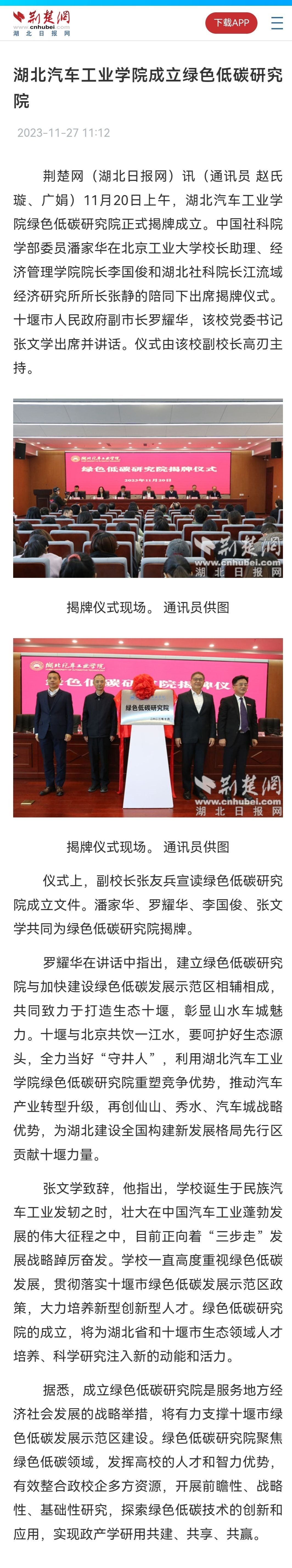 【荆楚网】湖北汽车工业学院成立绿色低碳研究院