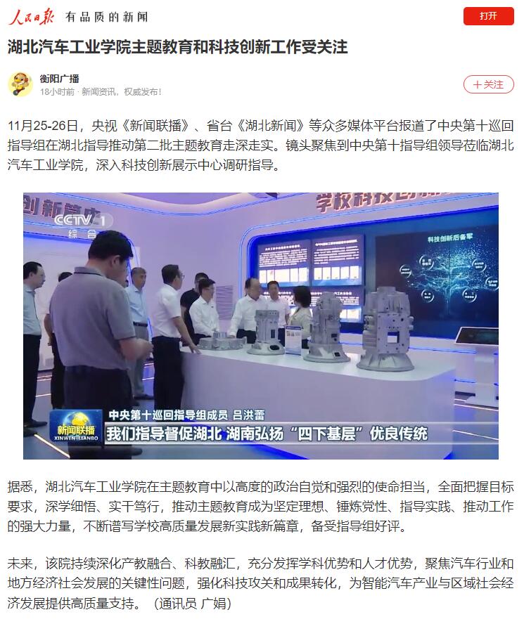 【人民日报】湖北汽车工业学院主题教育和科技创新工作受关注