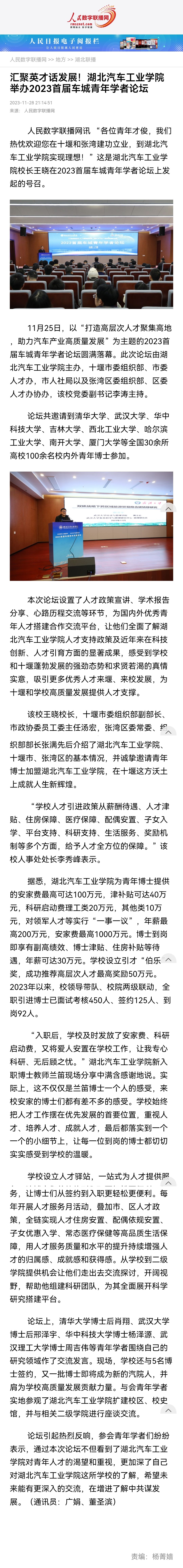 【人民数字联播】汇聚英才话发展!湖北汽车工业学院举办2023首届车城青年学者论坛