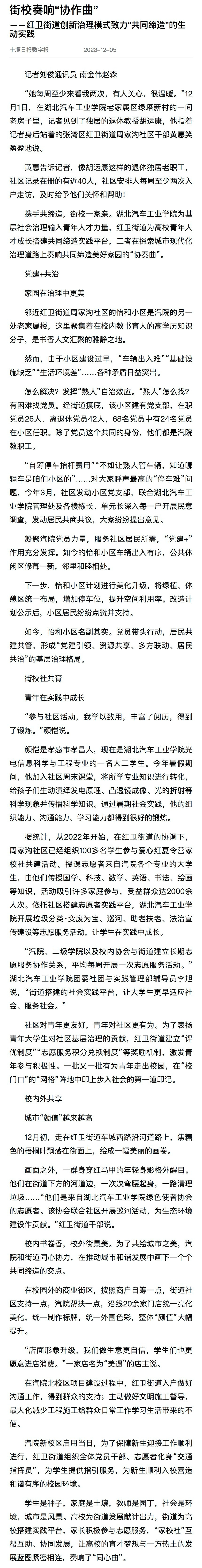 【十堰日报数字报】街校奏响“协作曲”——红卫街道创新治理模式致力“共同缔造”的生动实践