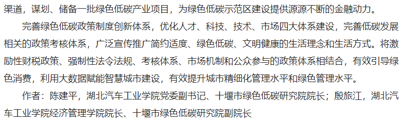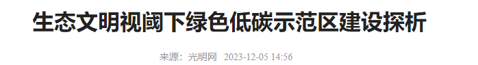 12月5日,光明网刊发了我校党委副书记、绿色低碳研究院院长陈建平和经济管理学院院长、绿色低碳研究院副院长殷旅江的理论文章《生态文明视阈下绿色低碳示范区建设探析》。11月20日湖北汽车工业学院绿色低碳研究院正式揭牌成立,本文正是研究院开展前瞻性、战略性、基础性研究结出的硕果。全文如下: