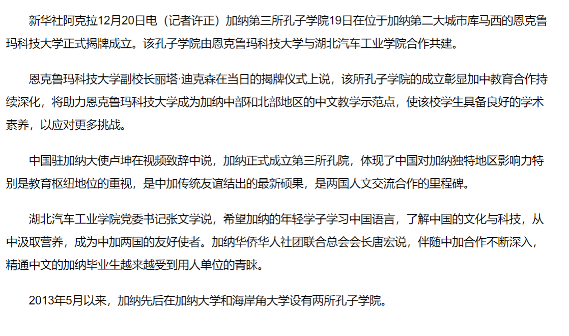 【新华网】加纳第三所孔子学院揭牌成立