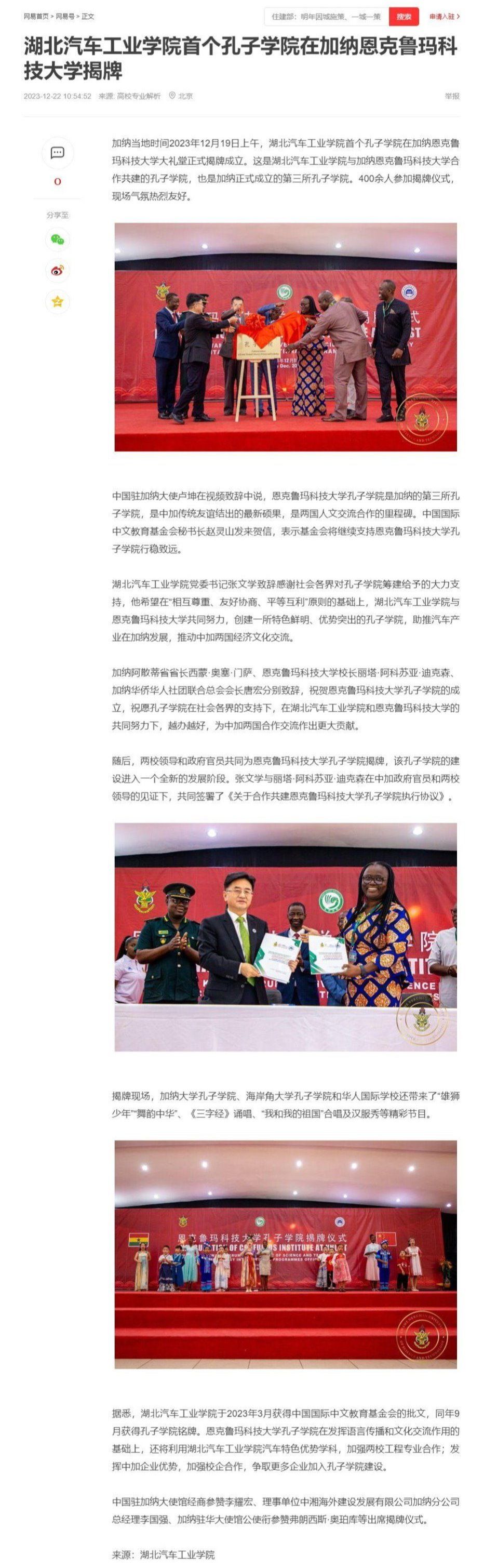【网易】湖北汽车工业学院首个孔子学院在加纳恩克鲁玛科技大学揭牌