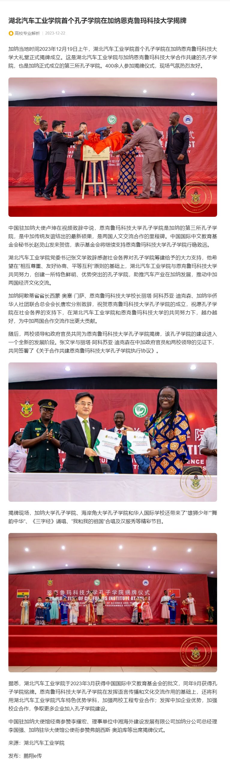 【腾讯】湖北汽车工业学院首个孔子学院在加纳恩克鲁玛科技大学揭牌