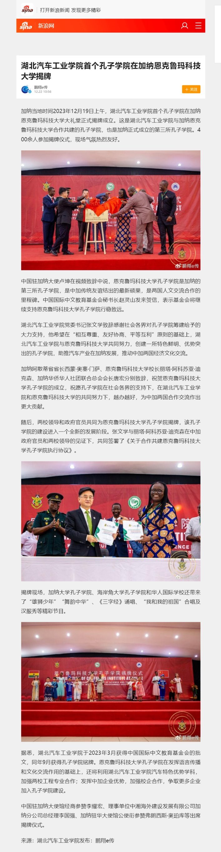 【新浪】湖北汽车工业学院首个孔子学院在加纳恩克鲁玛科技大学揭牌