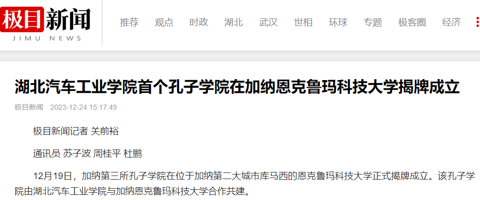 【楚天都市报极目新闻】湖北汽车工业学院首个孔子学院在加纳恩克鲁玛科技大学揭牌成立
