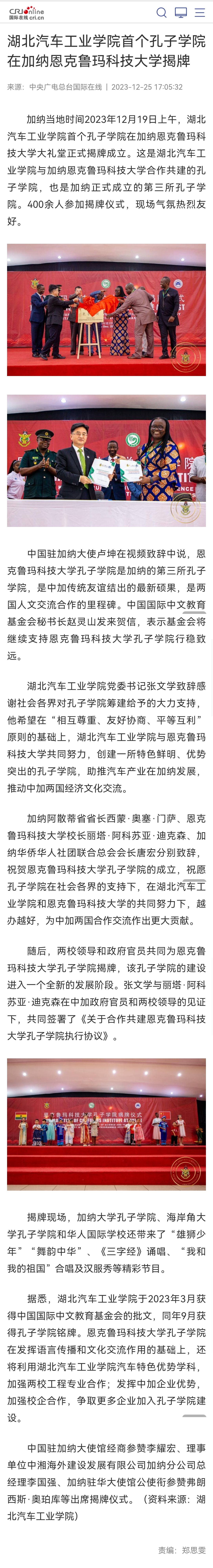 【国际在线】湖北汽车工业学院首个孔子学院在加纳恩克鲁玛科技大学揭牌