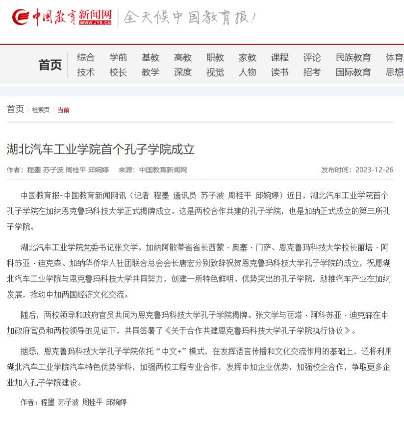 【中国教育新闻网】湖北汽车工业学院首个孔子学院成立