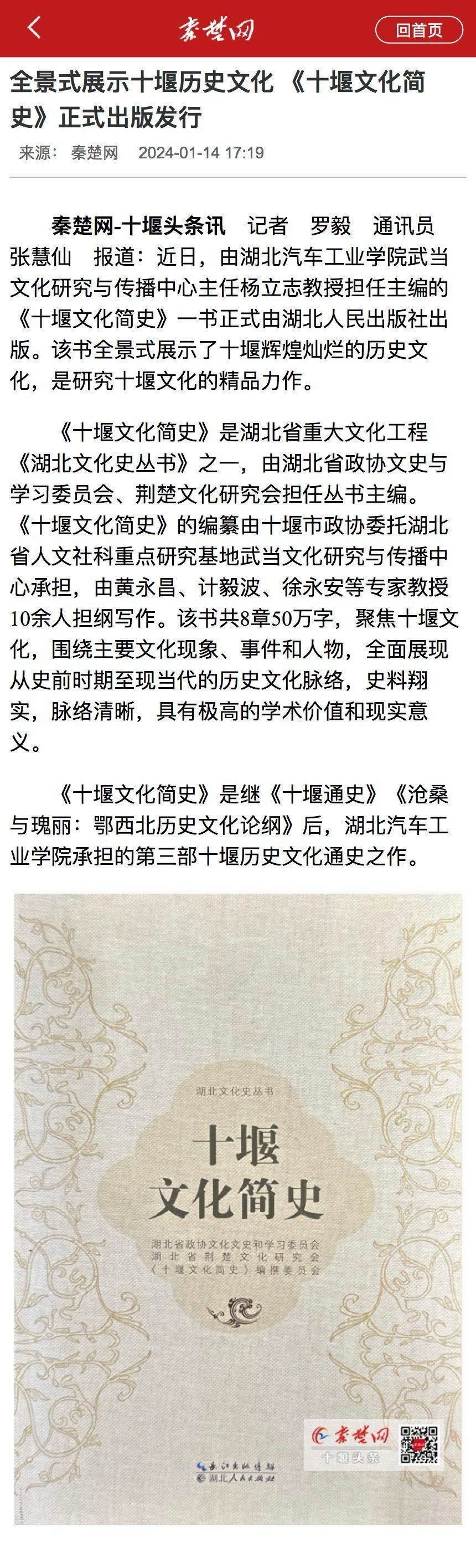 【秦楚网】全景式展示十堰历史文化 《十堰文化简史》正式出版发行