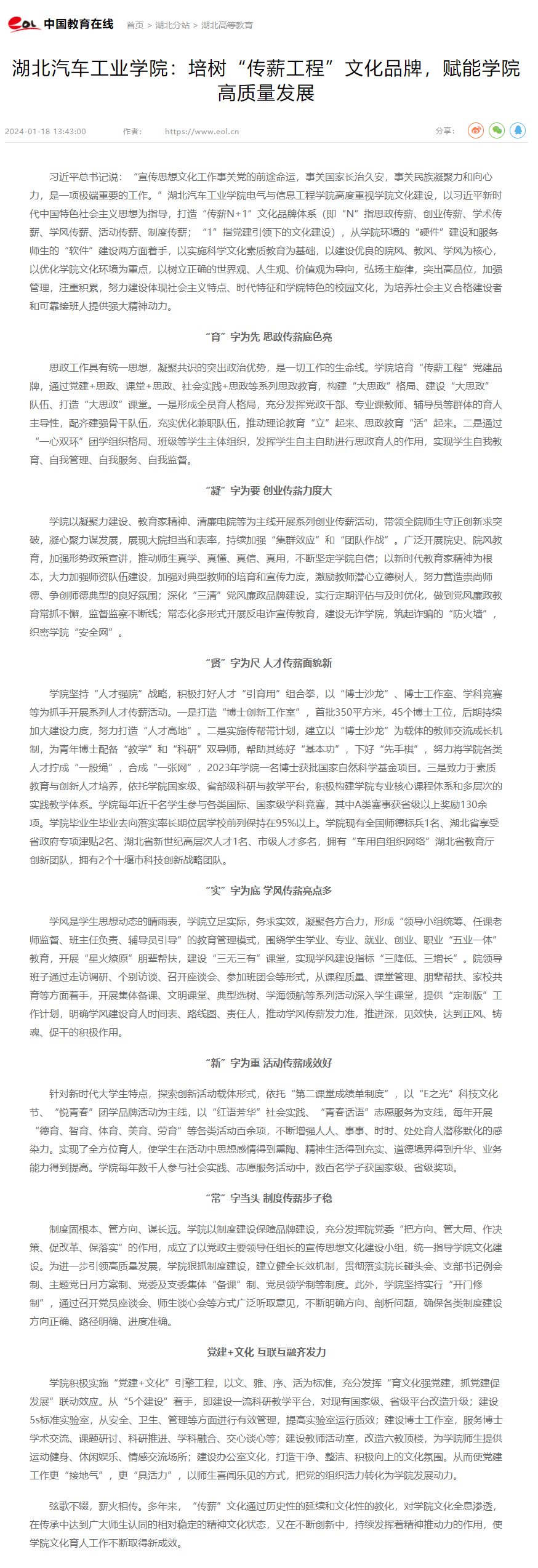 【中国教育在线】湖北汽车工业学院:培树“传薪工程”文化品牌,赋能学院高质量发展
