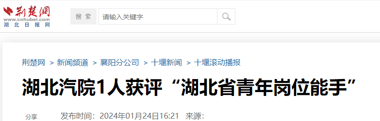 【荆楚网】湖北汽院1人获评“湖北省青年岗位能手”