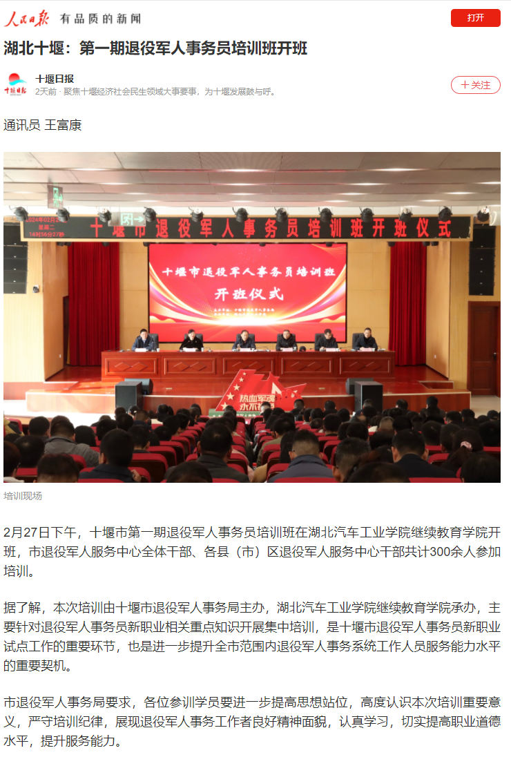 【人民日报】湖北十堰:第一期退役军人事务员培训班开班
