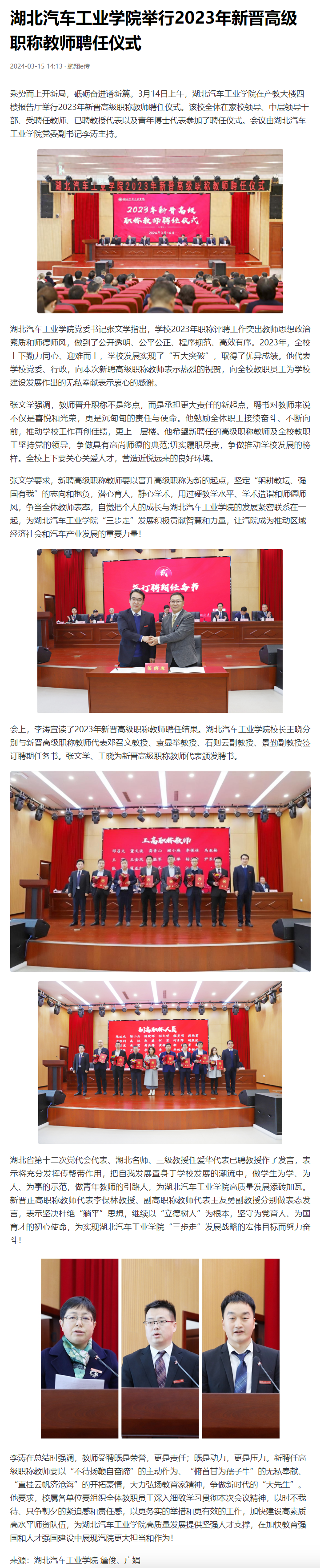 【今日头条】湖北汽车工业学院举行2023年新晋高级职称教师聘任仪式