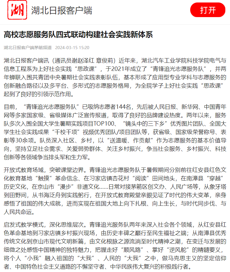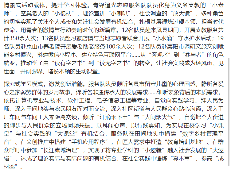 【湖北日报】高校志愿服务队四式联动构建社会实践新体系