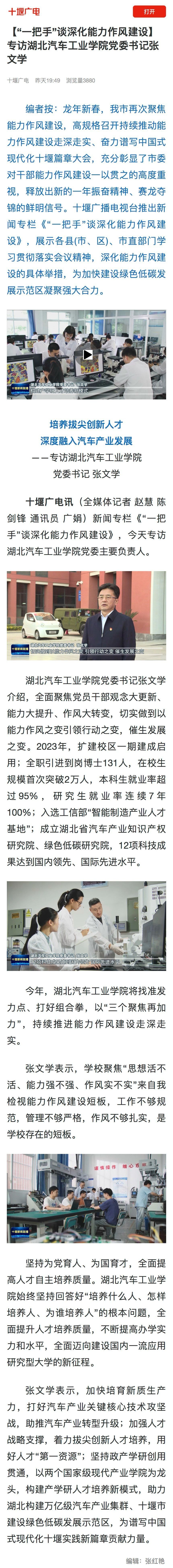 【十堰广电】【“一把手”谈深化能力作风建设】专访湖北汽车工业学院党委书记张文学