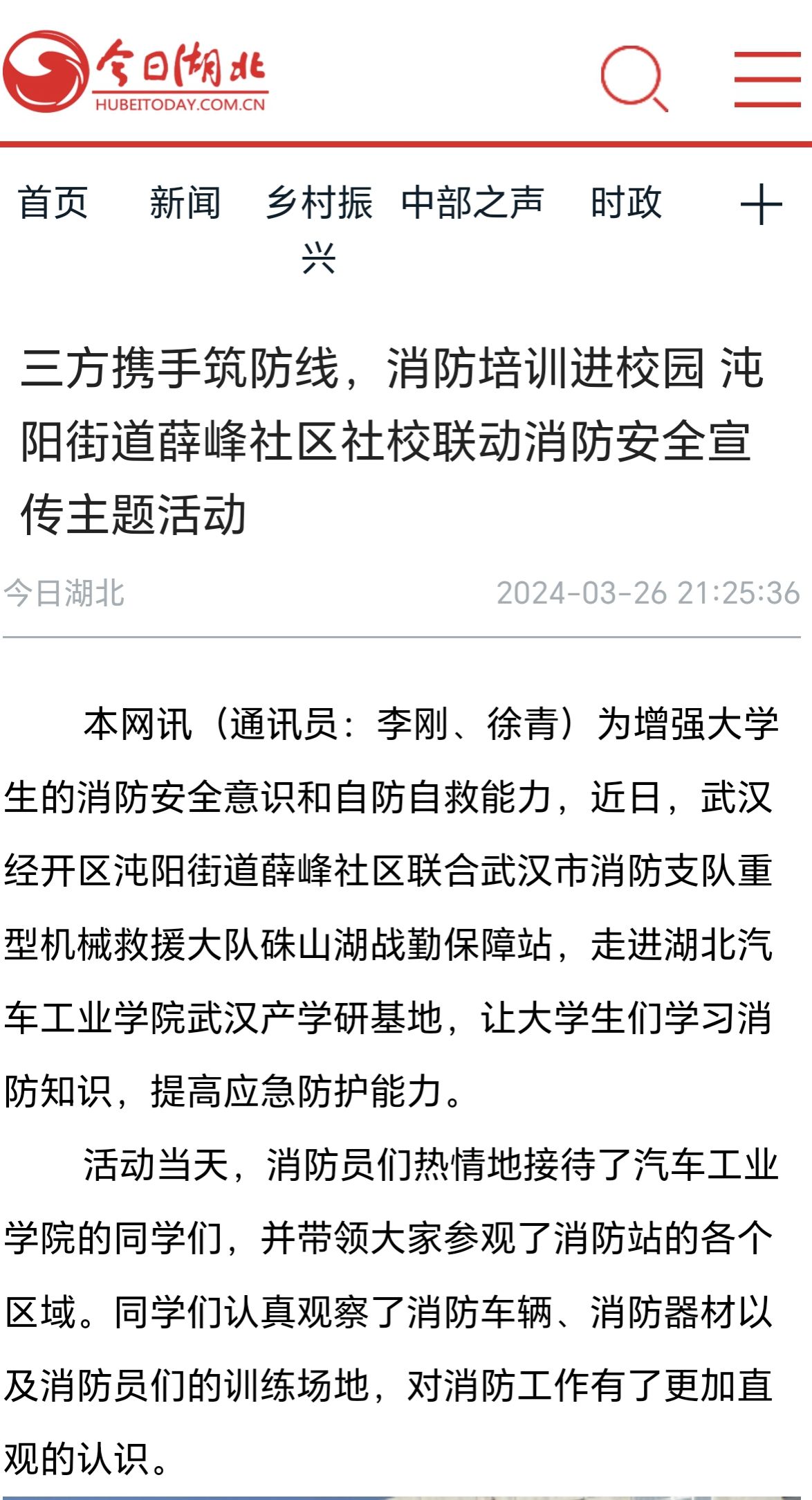 【今日湖北】三方携手筑防线,消防培训进校园 沌阳街道薛峰社区社校联动消防安全宣传主题活动