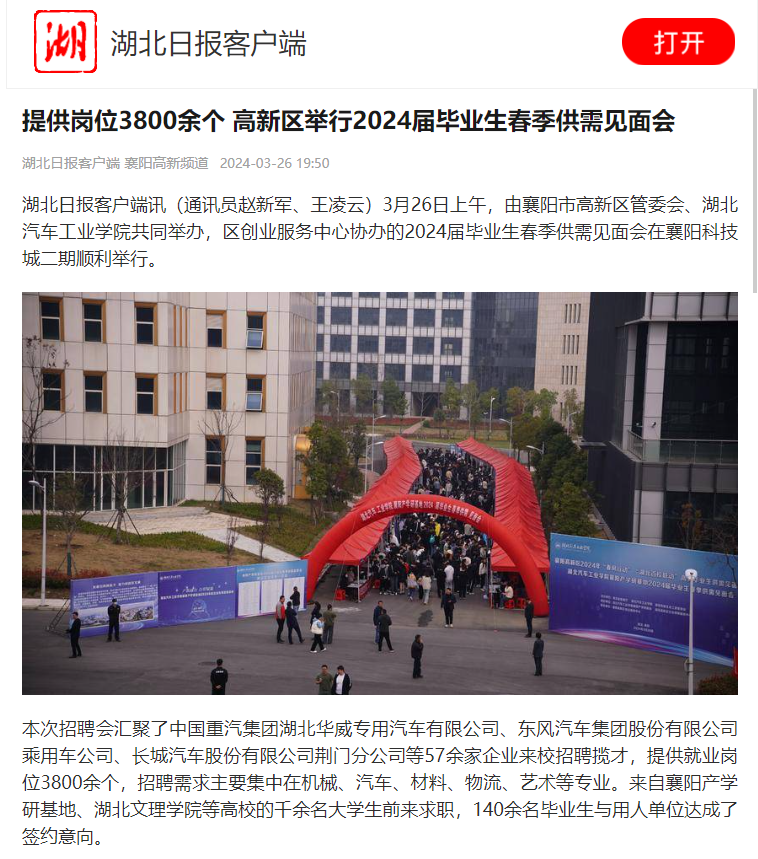 【湖北日报】提供岗位3800余个 高新区举行2024届毕业生春季供需见面会