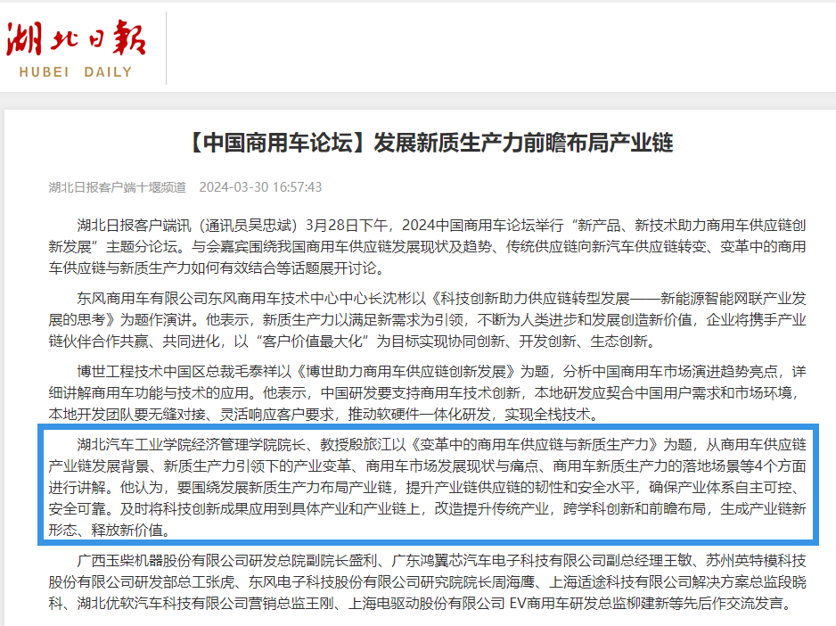 【湖北日报】【中国商用车论坛】发展新质生产力前瞻布局产业链