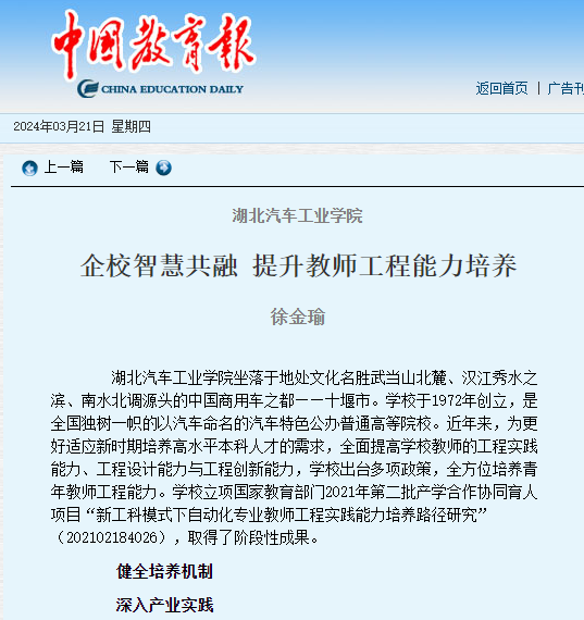 【中国教育报】企校智慧共融 提升教师工程能力培养