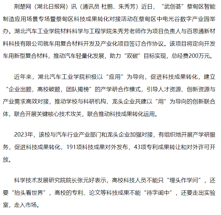 【荆楚网】湖北汽车工业学院以“应用”为导向,促进科技成果转化