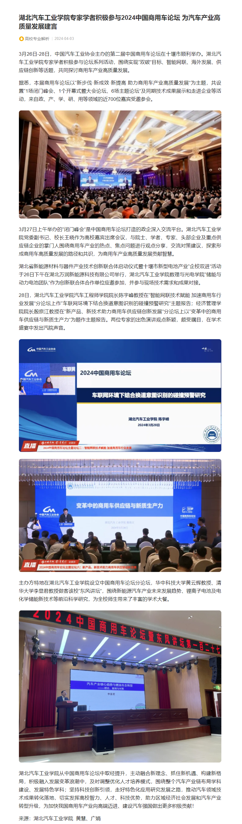【腾讯】湖北汽车工业学院专家学者积极参与2024中国商用车论坛 为汽车产业高质量发展建言