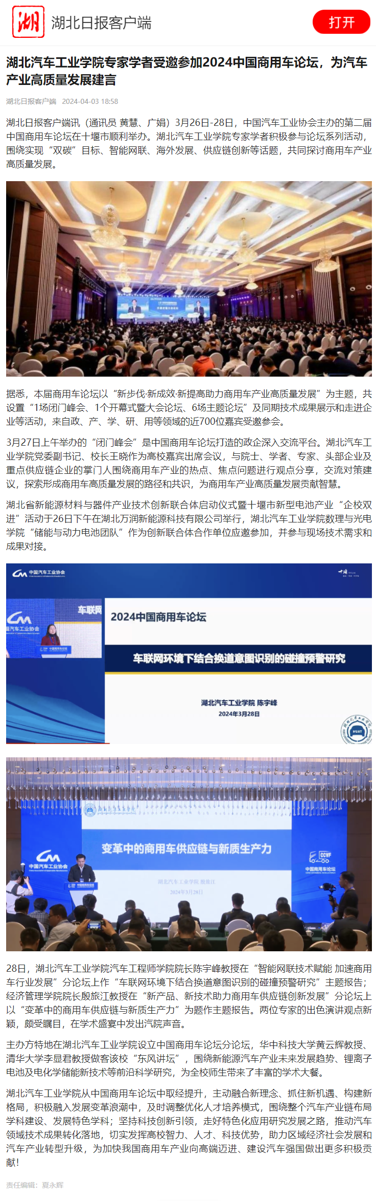 【湖北日报】湖北汽车工业学院专家学者受邀参加2024中国商用车论坛,为汽车产业高质量发展建言