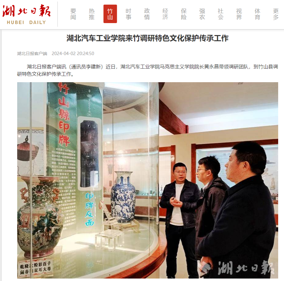 【湖北日报】湖北汽车工业学院来竹调研特色文化保护传承工作