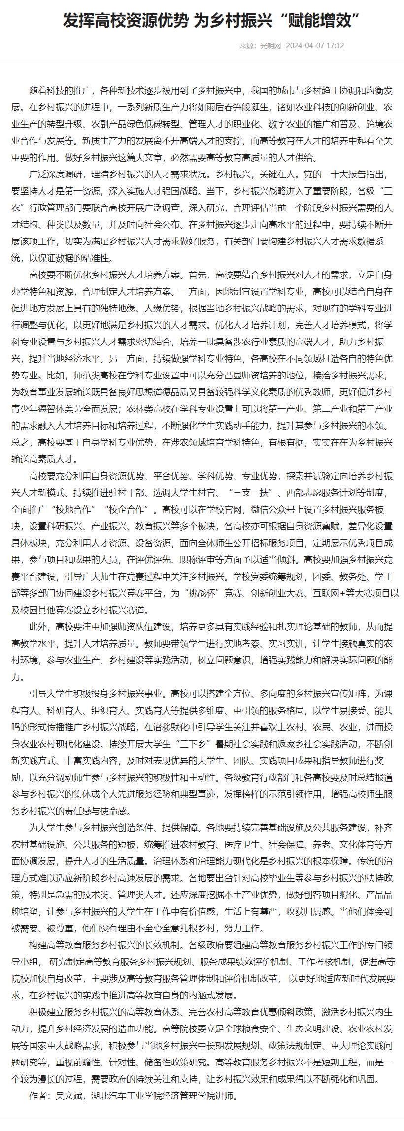 【光明网】发挥高校资源优势 为乡村振兴“赋能增效”