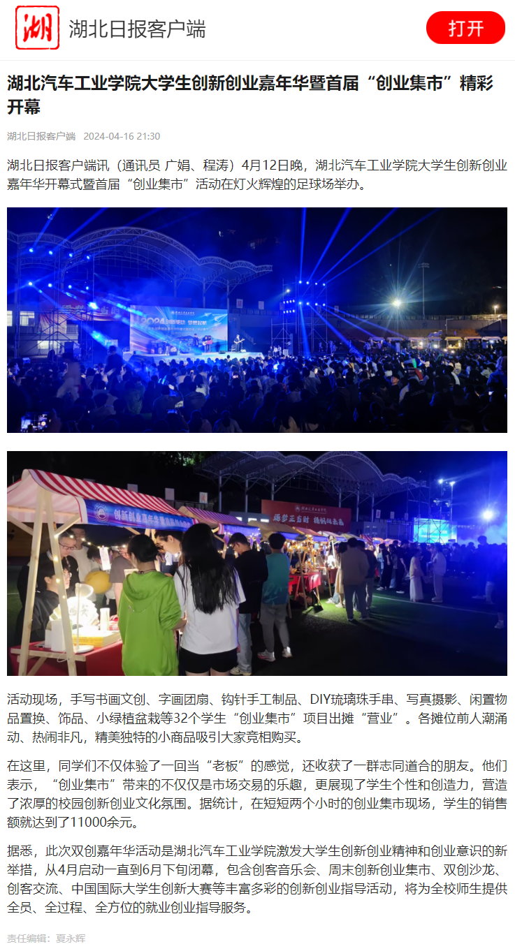 【湖北日报】湖北汽车工业学院大学生创新创业嘉年华暨首届“创业集市”精彩开幕