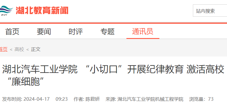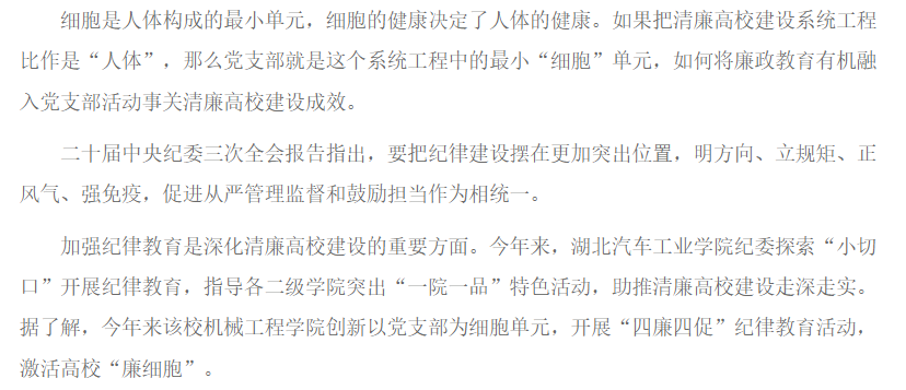 【湖北教育新闻】湖北汽车工业学院 “小切口”开展纪律教育 激活高校“廉细胞”