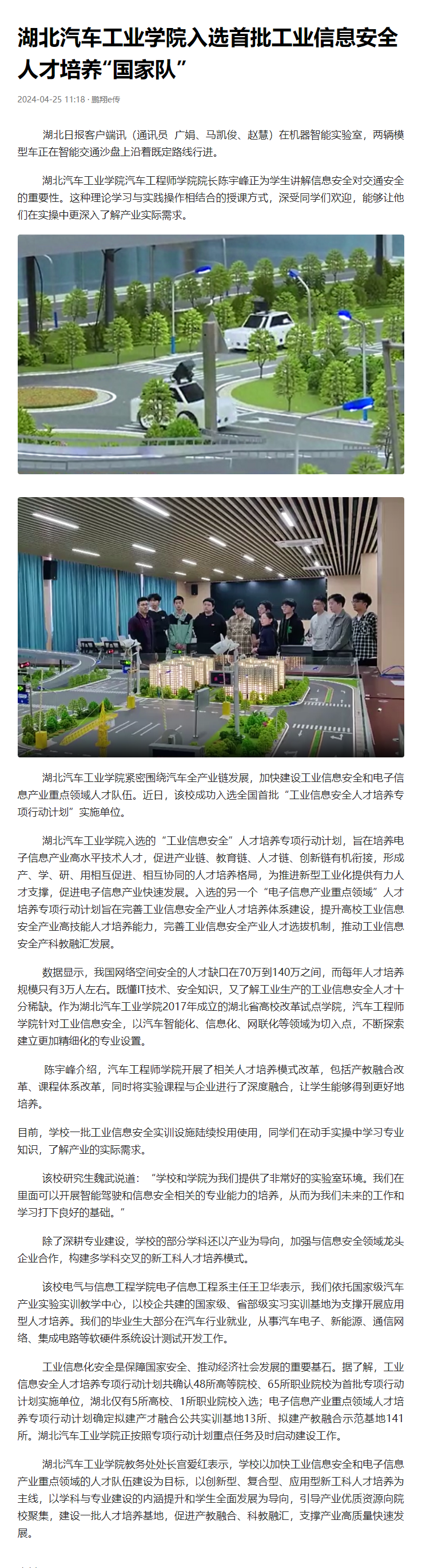 【今日头条】湖北汽车工业学院入选首批工业信息安全人才培养“国家队”