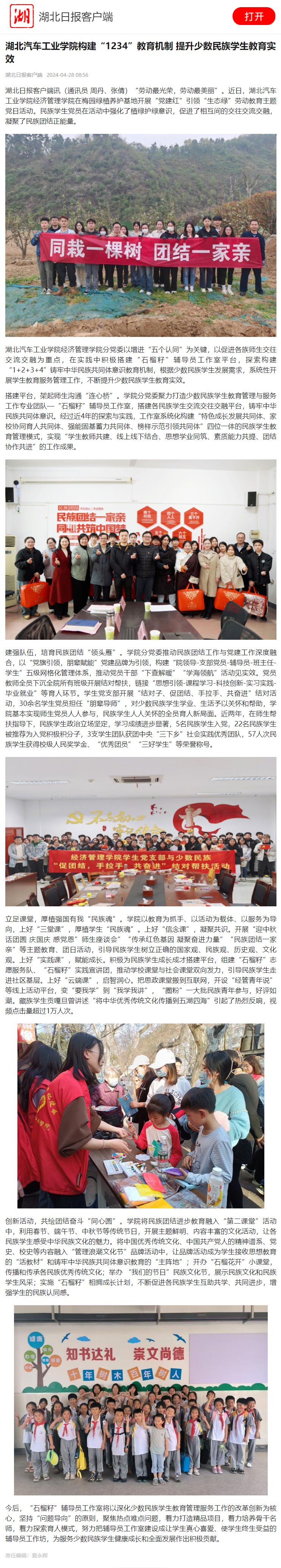【湖北日报】湖北汽车工业学院构建“1234”教育机制 提升少数民族学生教育实效