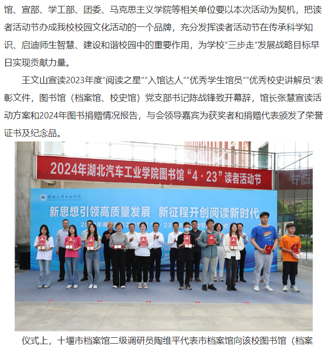 【人民日报数字传播】湖北汽车工业学院正式启动2024年“4•23”读者活动节