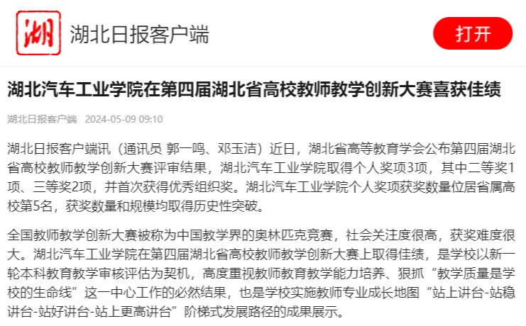 【湖北日报】湖北汽车工业学院在第四届湖北省高校教师教学创新大赛喜获佳绩