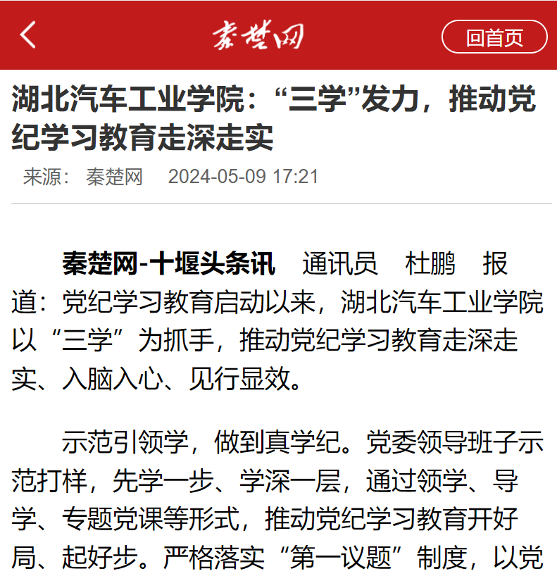 【秦楚网】湖北汽车工业学院:“三学”发力,推动党纪学习教育走深走实