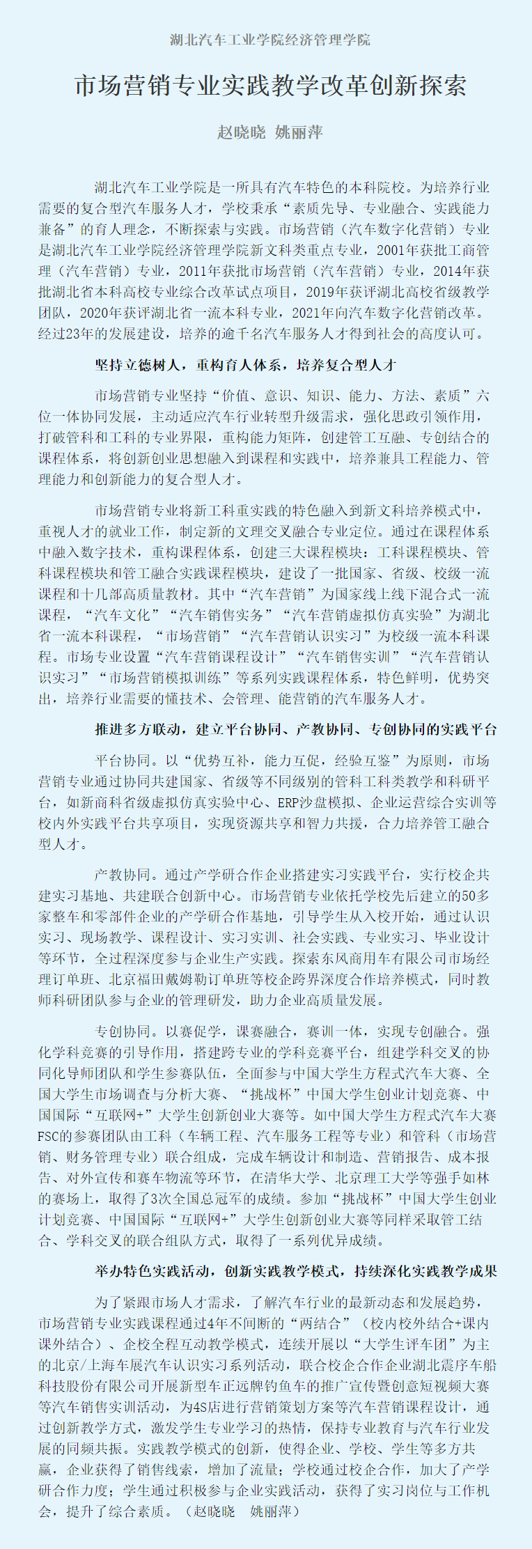 【中国教育报】湖北汽车工业学院经济管理学院市场营销专业实践教学改革创新探索
