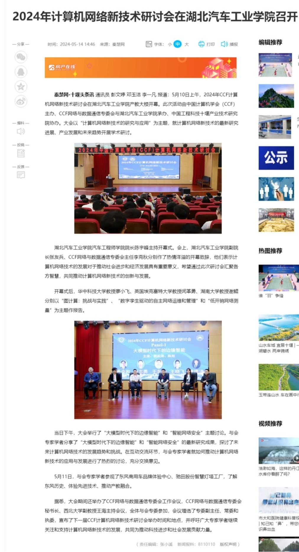 【秦楚网】2024年计算机网络新技术研讨会在湖北汽车工业学院召开