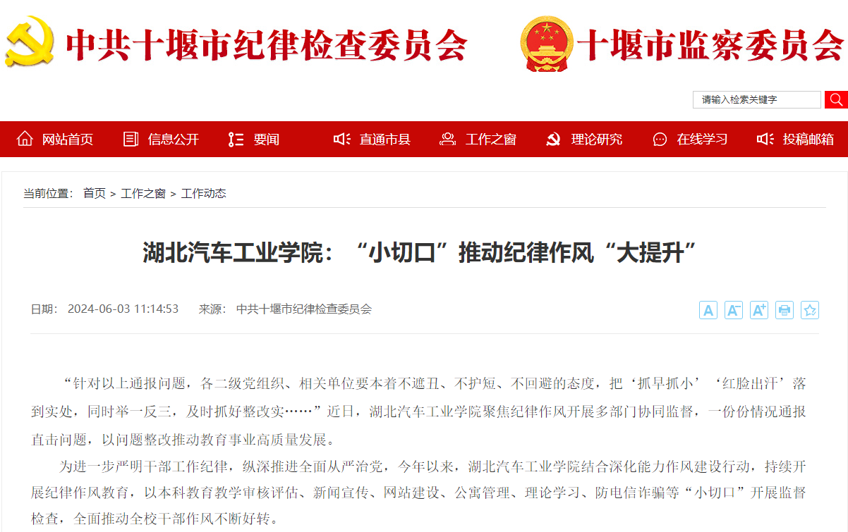 【十堰市纪委】湖北汽车工业学院:“小切口”推动纪律作风“大提升”
