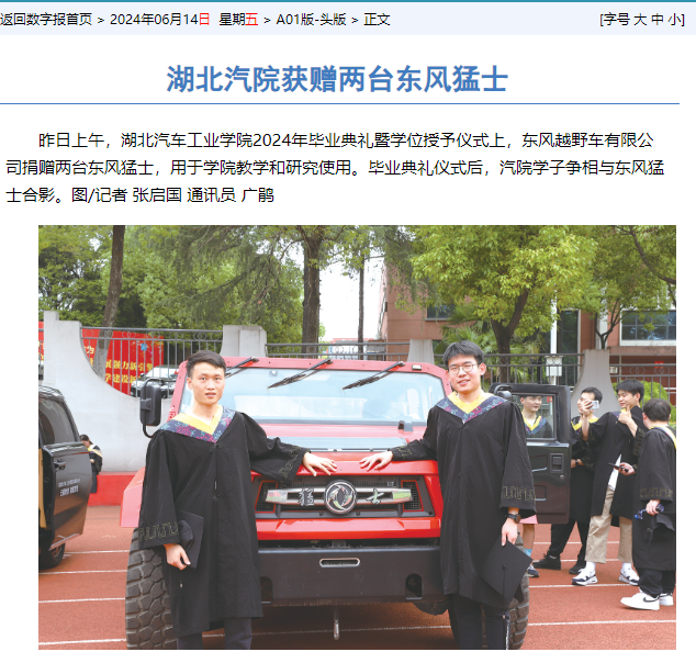 【十堰晚报】湖北汽院获赠两台东风猛士