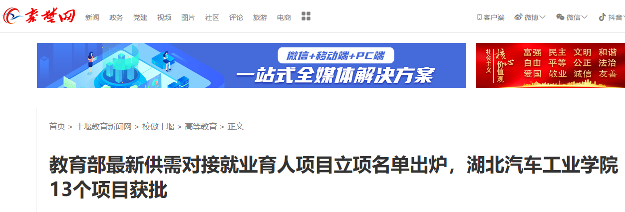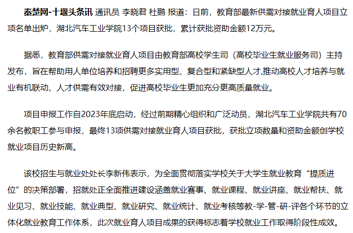 【秦楚网】教育部最新供需对接就业育人项目立项名单出炉,湖北汽车工业学院13个项目获批