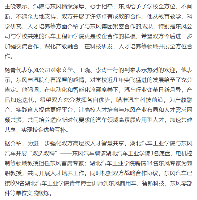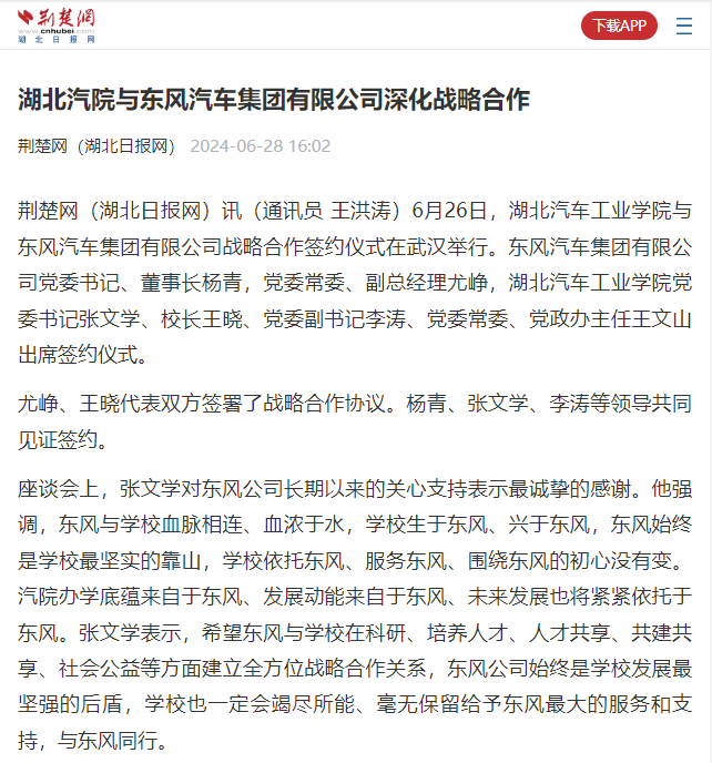 【荆楚网】湖北汽院与东风汽车集团有限公司深化战略合作
