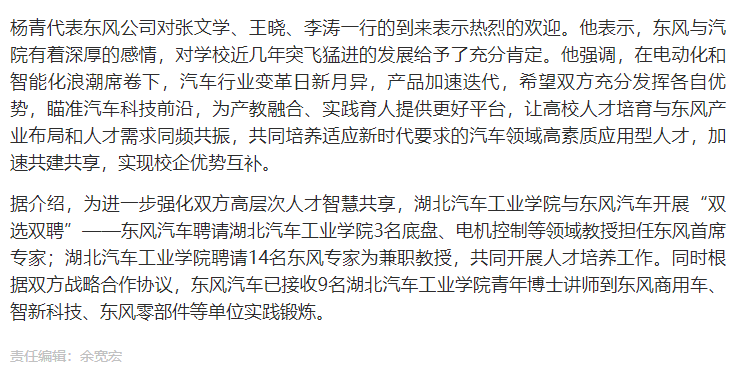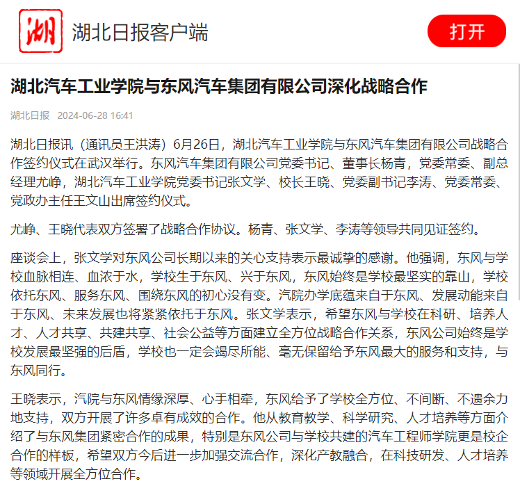 【湖北日报】湖北汽车工业学院与东风汽车集团有限公司深化战略合作