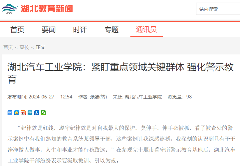【湖北教育新闻】湖北汽车工业学院:紧盯重点领域关键群体 强化警示教育