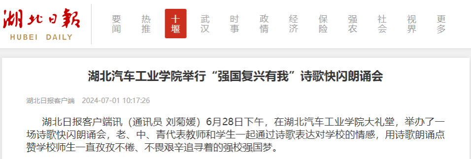 【湖北日报】湖北汽车工业学院举行“强国复兴有我”诗歌快闪朗诵会